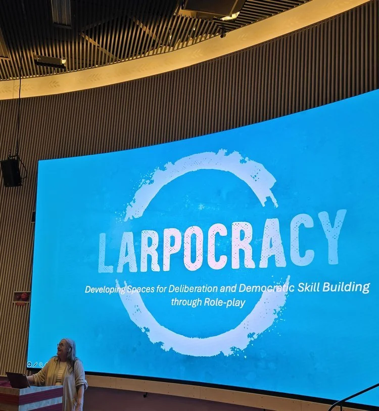 Our vision is to research best practices and create spaces for dialogue and democratic engagement through live-action role-playing (larp).